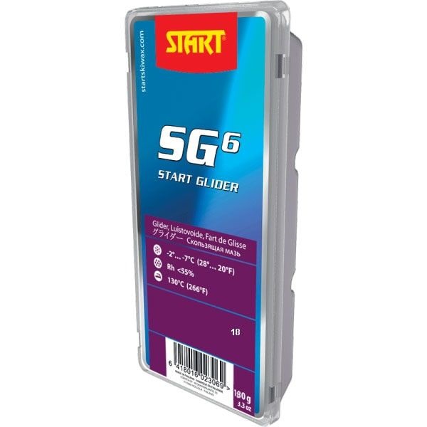 Парафин START SG6 Purple (фиолетовый) – предназначен для использования в температурном диапазоне от -2 °C до -7 °C, оптимальная температура утюга при нанесении мази составляет +130 °C.