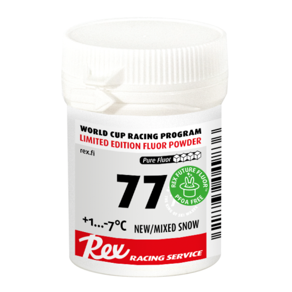 Rex 77 - это профессиональный фтороуглеродный порошок, наиболее подходящий для свежевыпавшего снега.