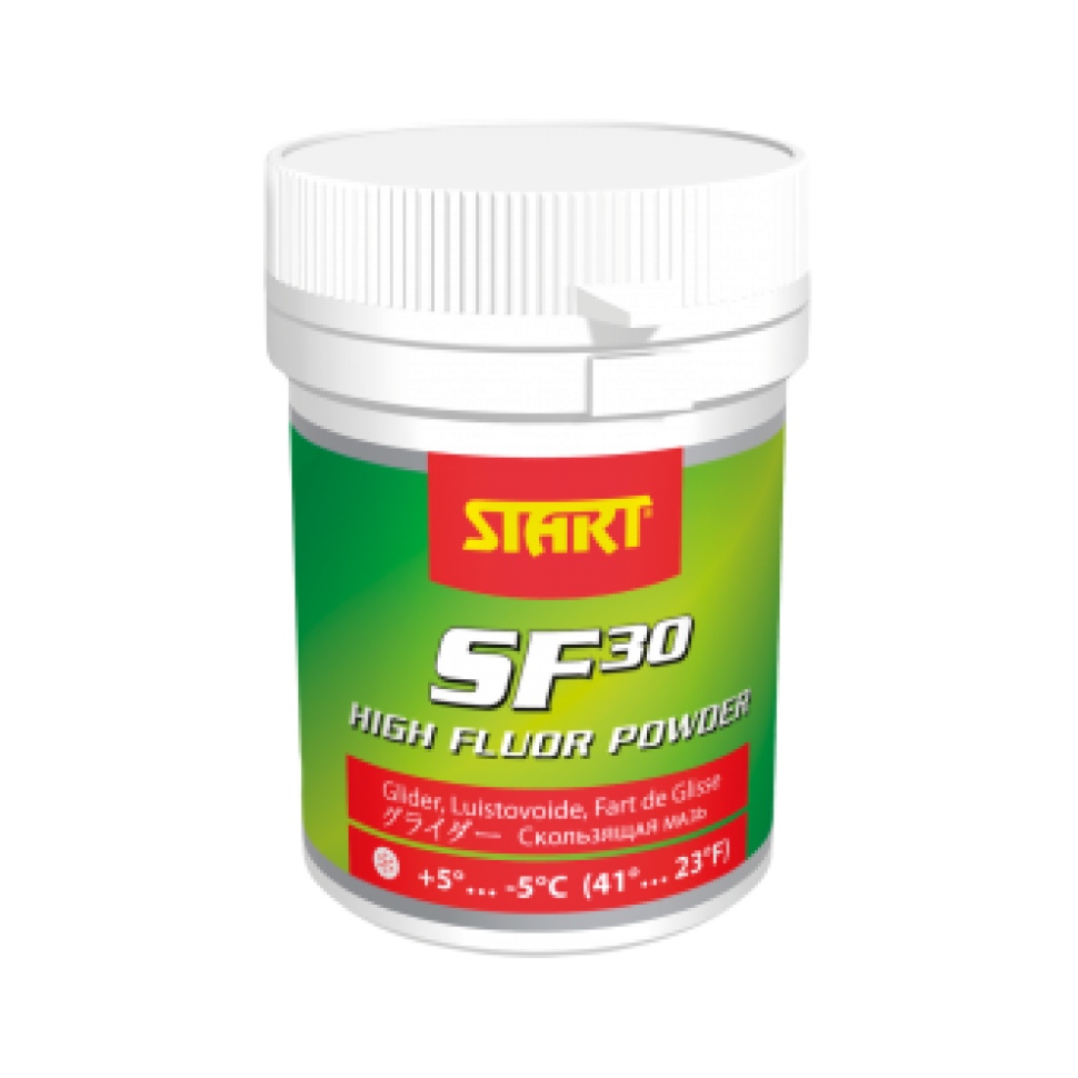 Порошок START SF 30 это универсальный порошок, имеющий фторированную добавку и используемый в качестве финишного слоя для создания оптимального скольжения за счет снижения образования воды между скользящей поверхностью лыж и лыжней.