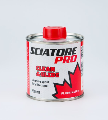 Смывка Sciatore Pro Fluor Clean &Glide 250мл FCC250 Фторовая смывка для скользящей поверхности лыж. Очищает от парафинов, порошков и грязи. При этом не пересушивает пластик. После обработки, значительно улучшается сцепление и долговечность вновь нанесенных слоев смазки.