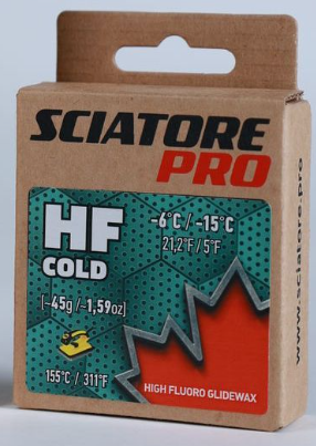 Твердый парафин HF COLD (св.зеленый) Sciatore Pro (с высоким содержанием фтора) -6C/-15C 45гр HFCC45