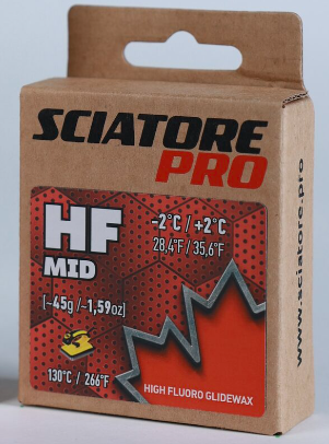 Твердый парафин HF MID (красный) Sciatore Pro (с высоким содержанием фтора) -2C/+2C 45гр HFMR45