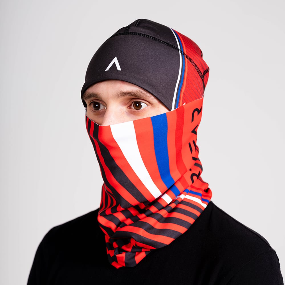 Данная модель представляет собой многофункциональный предмет спортивного гардероба, который можно одевать в качестве головного убора на занятия или тренировки, его можно использовать так же в качестве шарфа на шею или как балаклаву, чтобы прикрыть нос и рот от ветра или пыли.