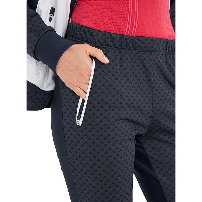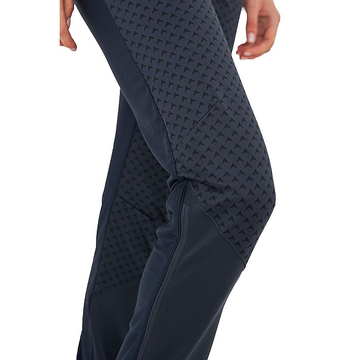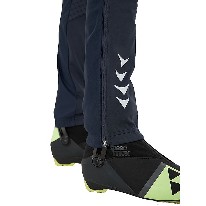 - Силиконовая резинка по низу брюк обеспечивает дополнительную фиксацию на лыжном ботинке.