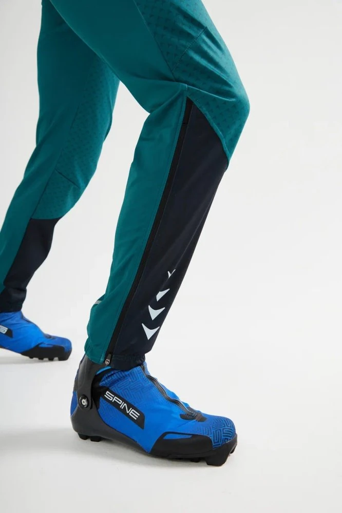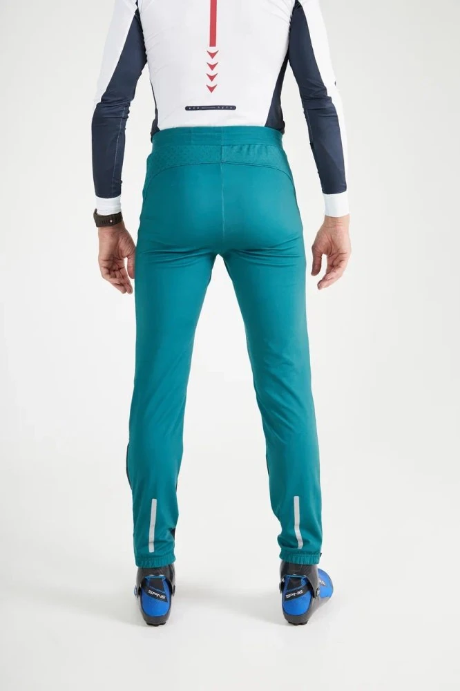 - Силиконовая резинка по низу брюк обеспечивает дополнительную фиксацию на лыжном ботинке.