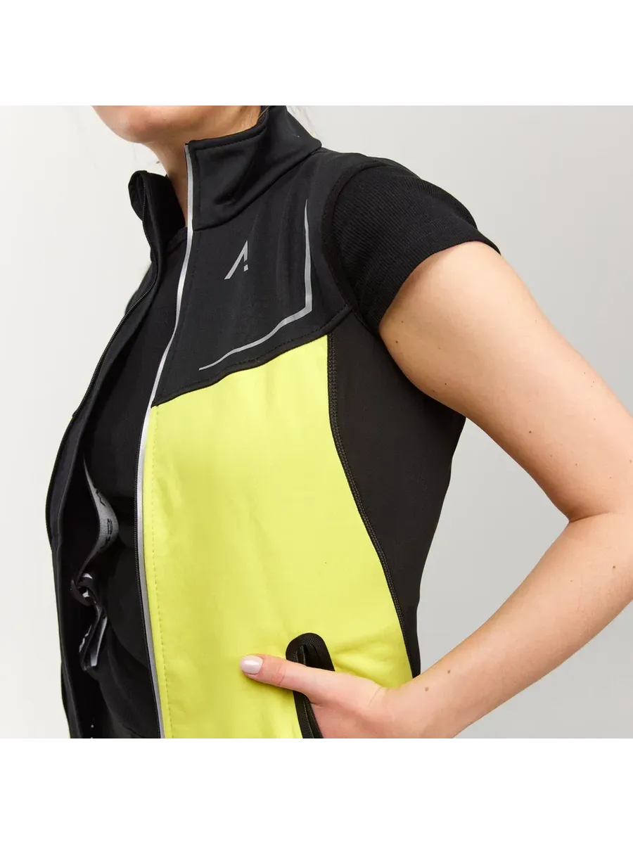 Анатомический крой жилета обеспечивает свободу движений. Силиконовая резинка в нижней части куртки надежно фиксирует жилет на месте, предотвращая его поднимание во время активных занятий. Световозвращающие вставки на спине делают вас заметнее в условиях низкой видимости.
