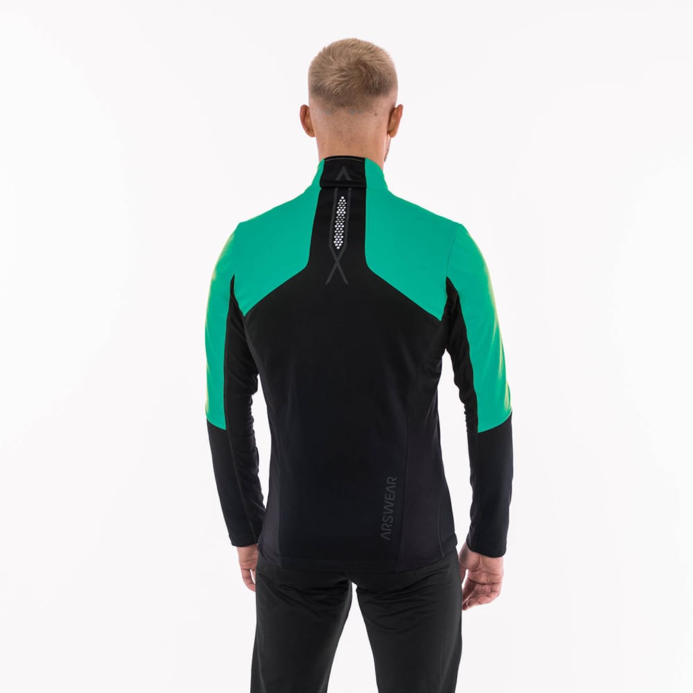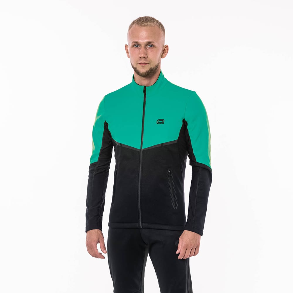 ХАРАКТЕРИСТИКИ -3-х слойный эластичный Softshell Dobby -Вставки из утепленной лайкры для лучшей циркуляции воздуха -Лазерная перфорация на спине -Анатомический крой -Силиконовая резинка в нижней части куртки -Мембрана 5000/8000 -Светоотражающие вставки на спине и рукавах
