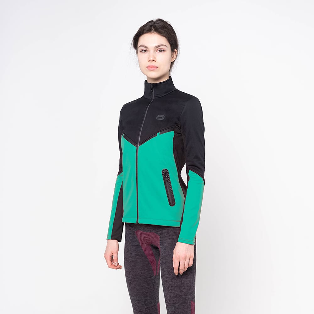 ХАРАКТЕРИСТИКИ -3-х слойный эластичный Softshell Dobby -Вставки из утепленной лайкры для лучшей циркуляции воздуха -Лазерная перфорация на спине -Анатомический крой -Силиконовая резинка в нижней части куртки -Мембрана 5000/8000 -Светоотражающие вставки на спине и рукавах
