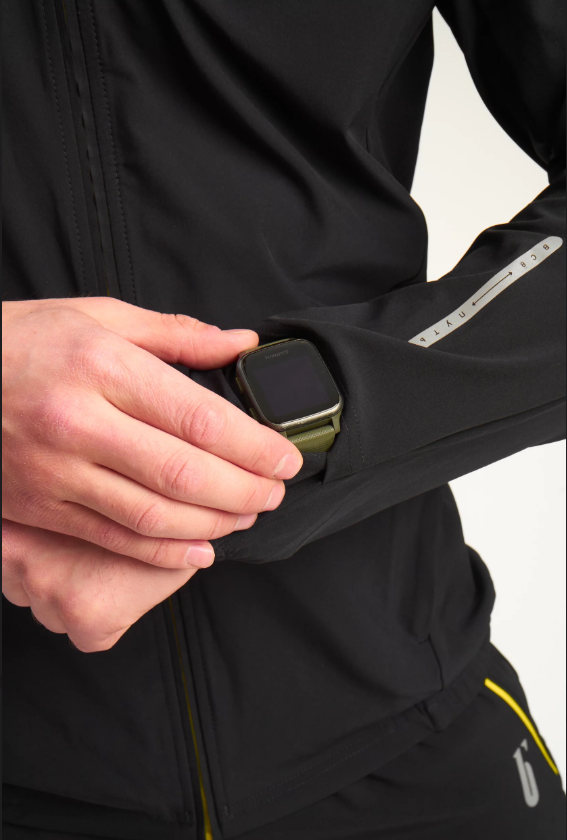 Чтобы отслеживать свой тренировочный процесс не понадобиться снимать куртку, так как на левом рукаве предусмотрено нахлестное отверстие под часы
