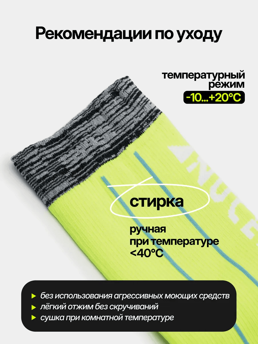 ВНИМАНИЕ: для данных носков рекомендуем ручную стирку при температуре не выше 40 градусов без использования агрессивных средств, легкий отжим без скручиваний, сушка при комнатной температуре.