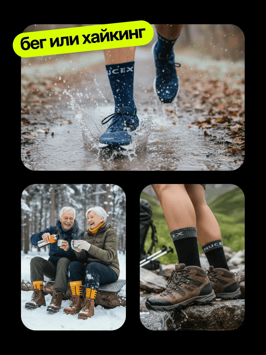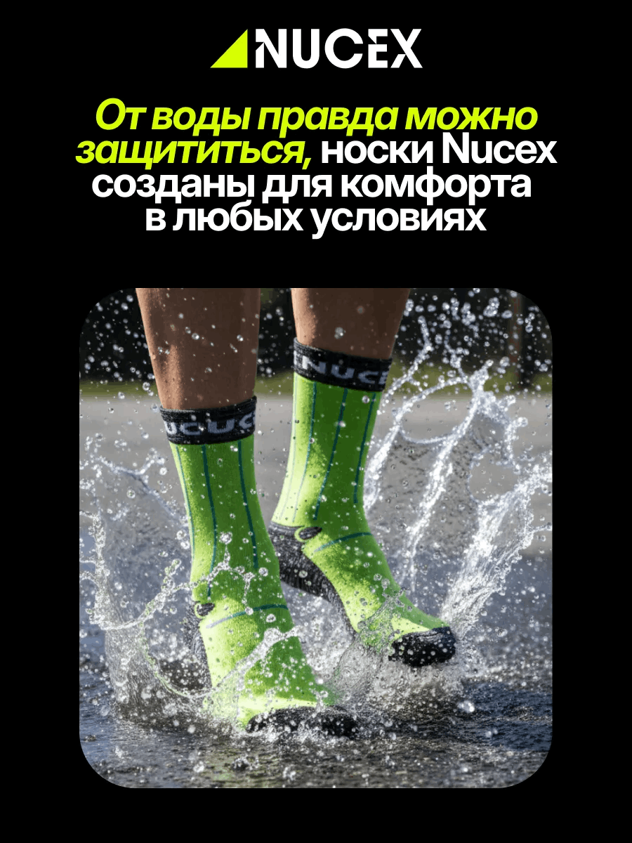 Влагонепроницаемые носки имеют эргономичный дизайн с анатомической посадкой, что обеспечивает точное прилегание к стопе и минимизирует риск натирания.