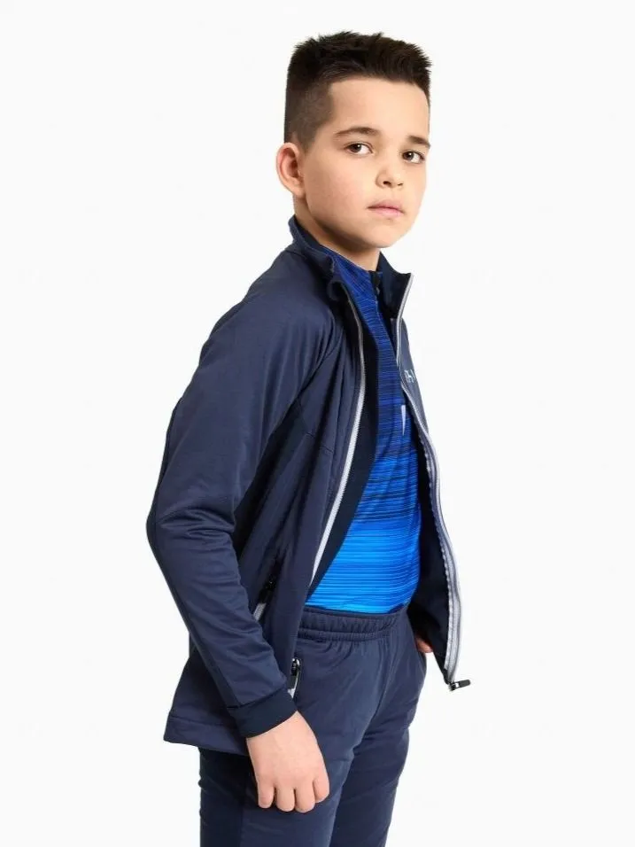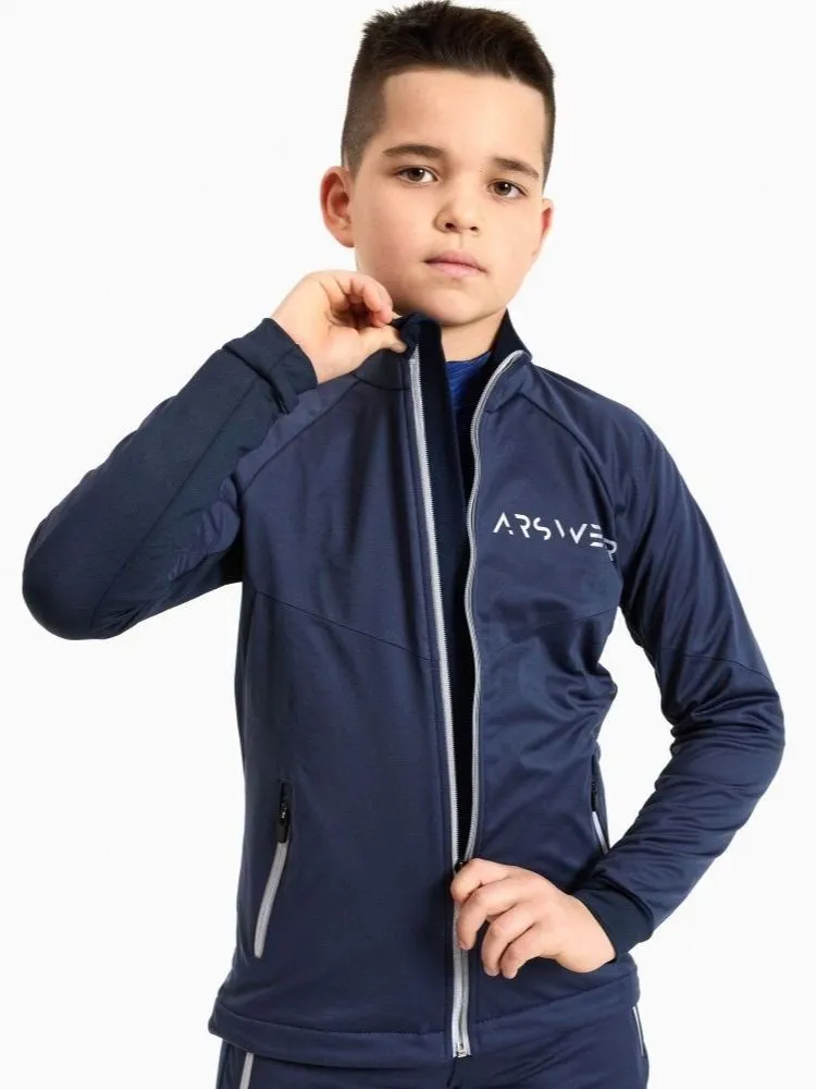 Куртка Arswear Softshell Base Kids (Цвет Нави) JSBASK3 Arswear Softshell Base Kids - тренировочная куртка для беговых лыж и бега зимой. Подходит для начинающих и уже опытных лыжников и бегунов для тренировок в холодную погоду от +5°С до -20°С. Куртка полностью адаптирована для российских погодных условий. Основной материал куртки - ветрозащитный SoftShell Dobby утепленный с внутренней стороны. Лыжная куртка надежно защищает от встречного ветра и осадков, хорошо дышит. Имеет характеристики 8.000/8.000 - это высокие показатели для экипировки, отвечающие требованиям профессиональных спортсменов. Зоны на спине , подмышках и внутренней части рукавов выполнены из эластичного материала для свободы движений и лучшего влагоотвода. Вставки с внутренней стороны утеплены. Свободный крой обеспечивает свободу движений, что особенно важно для спортсменов и любителей активного отдыха. На спинке присутствуйте перфорация для лучшей циркуляции воздуха и теплообмена. Особенности темно-синей лыжной куртки Arswear Softshell Base: ветро и влагозащитный SoftShell Dobby с показателями 8000/8000; утепленные вставки из эластичного материала; отличная терморегуляция и вентиляция; прочная и износостойкая; флис Flex плотностью 195 г/м2; защитный клапан на молнии; рукава реглан; мембранный материал и флис имеет воздушную прослойку; перфорация на спине; 2 боковых кармана выполнены из водозащитного материала; светоотражающие элементы; воротник-стойка; свободный крой. Разминочная куртка Arswear Softshell Base для мальчиков и девочек пдойдет для: беговых лыж; бега осенью, зимой, весной; профессиональных спортсменов и любителей; скандинавской ходьбы; велоспорта; лыжероллеров; занятий спортом на открытом воздухе; активного отдыха. Характеристика: Размер: идет размер в размер, соответствует таблице размеров Температура: от +5°С до -20°С Материал/Мембрана: SoftShell Dobby 5.000/8.000 Эластичные вставки: утеплены Карманы: 2 внешних Размерный ряд: от 130 до 160 Страна бренда: Россия