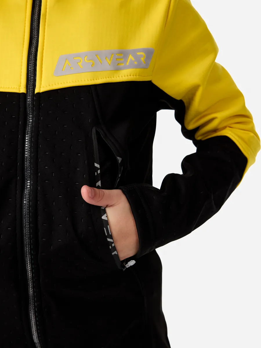 Основной материал данной куртки ветрозащитный dobby softshell. Используется вставки из дышащего эластичного материала на спине, подмышках и внутренней части рукавов. Карманы выполнены из водозащитного материала. На спинке присутствует перфорация для лучшей циркуляции воздуха и теплообмена. Присутствуют светоотражающие элементы на груди и спине. Мембрана 5000/8000