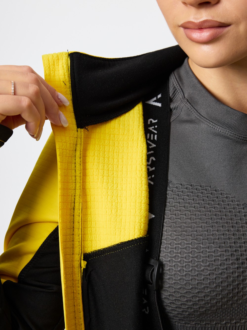 Основной материал данной куртки ветрозащитный dobby softshell. Используется вставки из дышащего эластичного материала на спине, подмышках и внутренней части рукавов. Карманы выполнены из водозащитного материала. На спинке присутствует перфорация для лучшей циркуляции воздуха и теплообмена. Присутствуют светоотражающие элементы на груди и спине. Мембрана 5000/8000