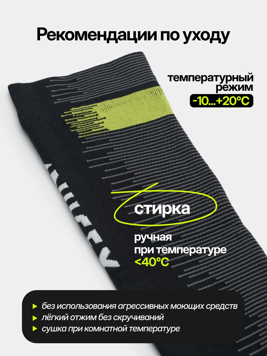 ВНИМАНИЕ: для данных носков рекомендуем ручную стирку при температуре не выше 40 градусов без использования агрессивных средств, легкий отжим без скручиваний, сушка при комнатной температуре.